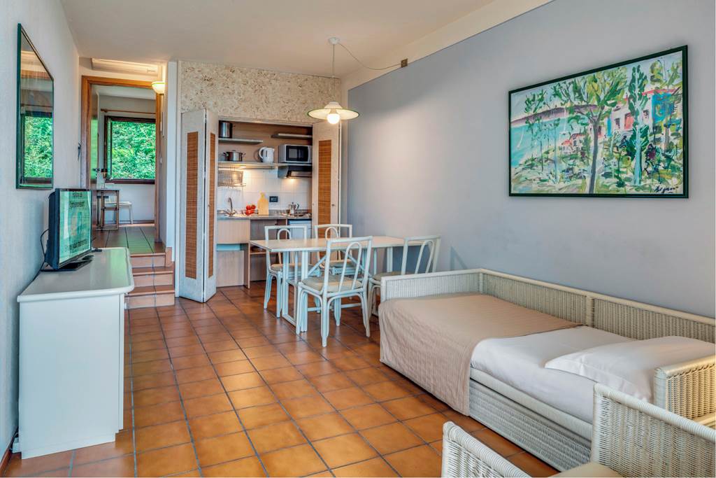 The Poiano Resort Apartments offer a comfortable stay set against the breathtaking backdrop of Lake Garda. The resort features a scenic pool area and an on-site restaurant, along with a great range of facilities including tennis and football courts. Children are well catered for with a daily mini-club offering organised activities, an outdoor playground and indoor playroom. There's also frequent evening entertainment and a variety of daytime activities for all ages. For a change of pace, hop on the complimentary bus to the charming Garda resort centre and explore this stunning lakeside location.Apartment Bilo sleeps up to 2 adults and 2 children and have bathroom containing a shower, hairdryer, air conditioning, flat screen television, tea and coffee making facilities, fridge, 4 ring cooker and balcony or terrace. Lake View and Trilo Apartments sleeping up to 6 are also available.