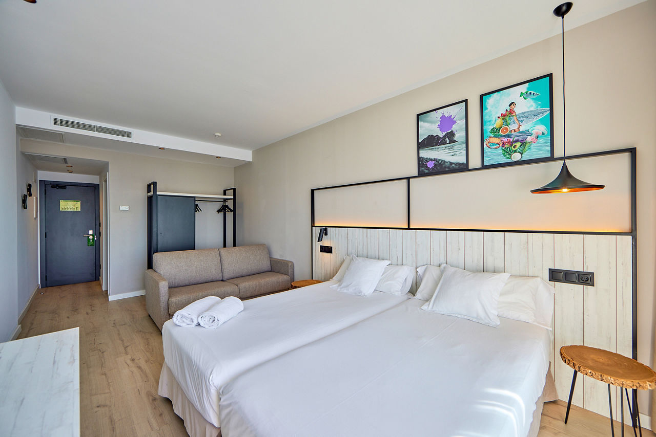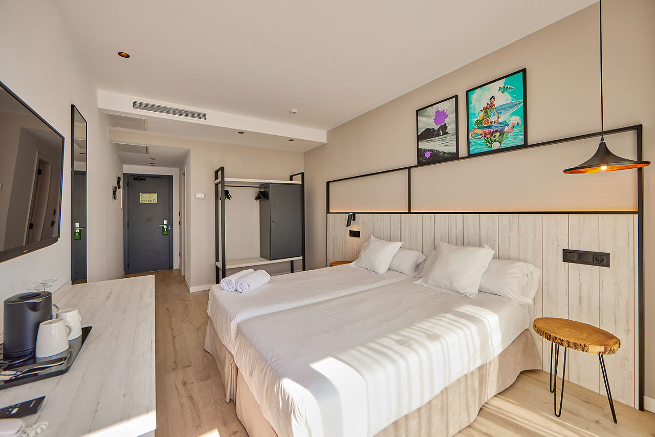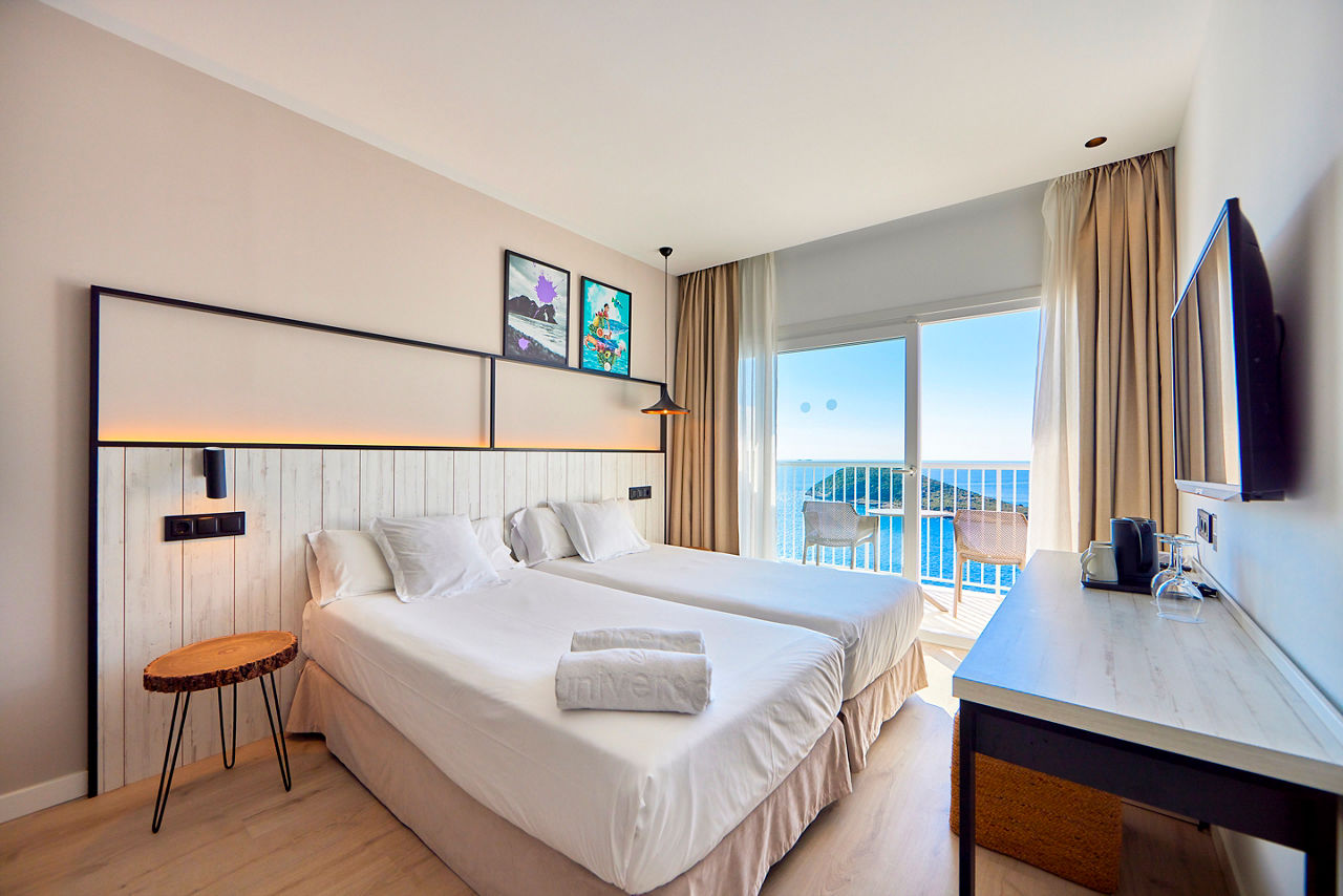 Good times are waiting for you at Hotel Florida. With a spacious gym, relaxing poolside hammocks and a stylish rooftop bar, this hotel has everything you need for an enjoyable stay. It?s also made thoughtful eco-friendly choices, replacing disposable materials with locally sourced, natural products. And when the sun begins to set, you can unwind to live saxophone music for the perfect end to your day.Double and Twin Sea View room sleep up to 3 adults and have full bathroom, ceiling fan, TV, safe and balcony or terrace. Double and Twin Sea View rooms for sole use and All Inclusive are also available.