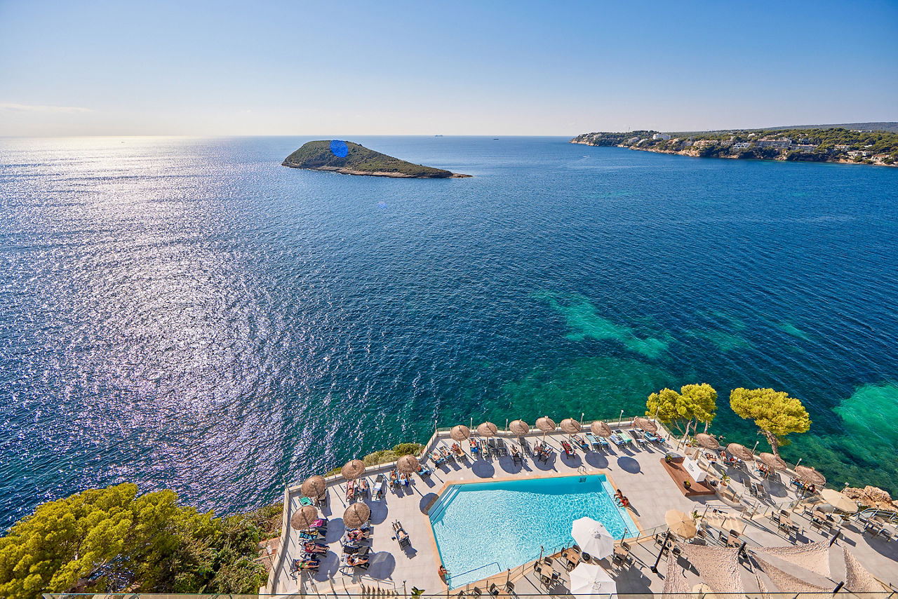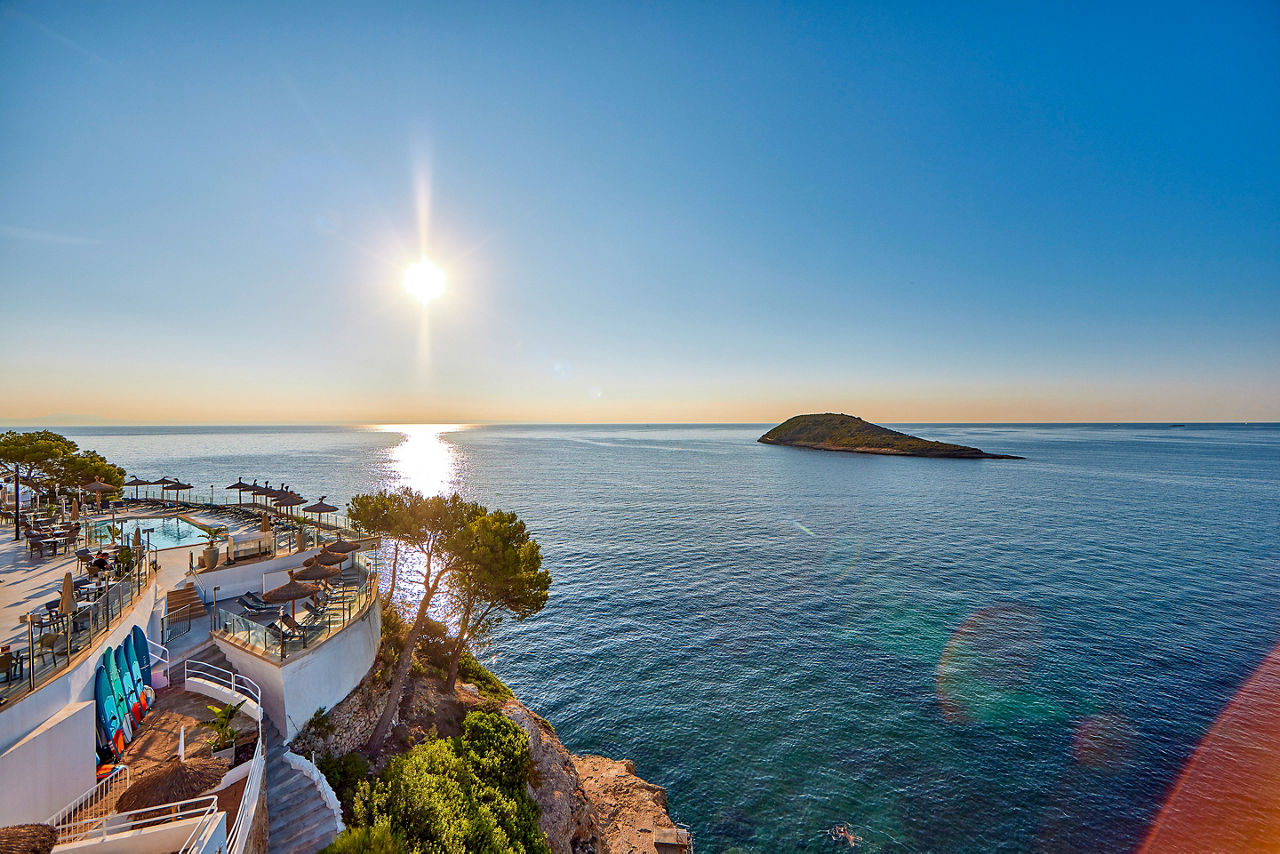 Uphill on the Torrenova headland. 300m from the beach (accessed via steps). 700m from Magalluf resort centreEating And Drinking