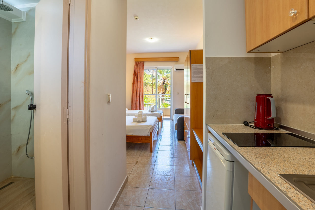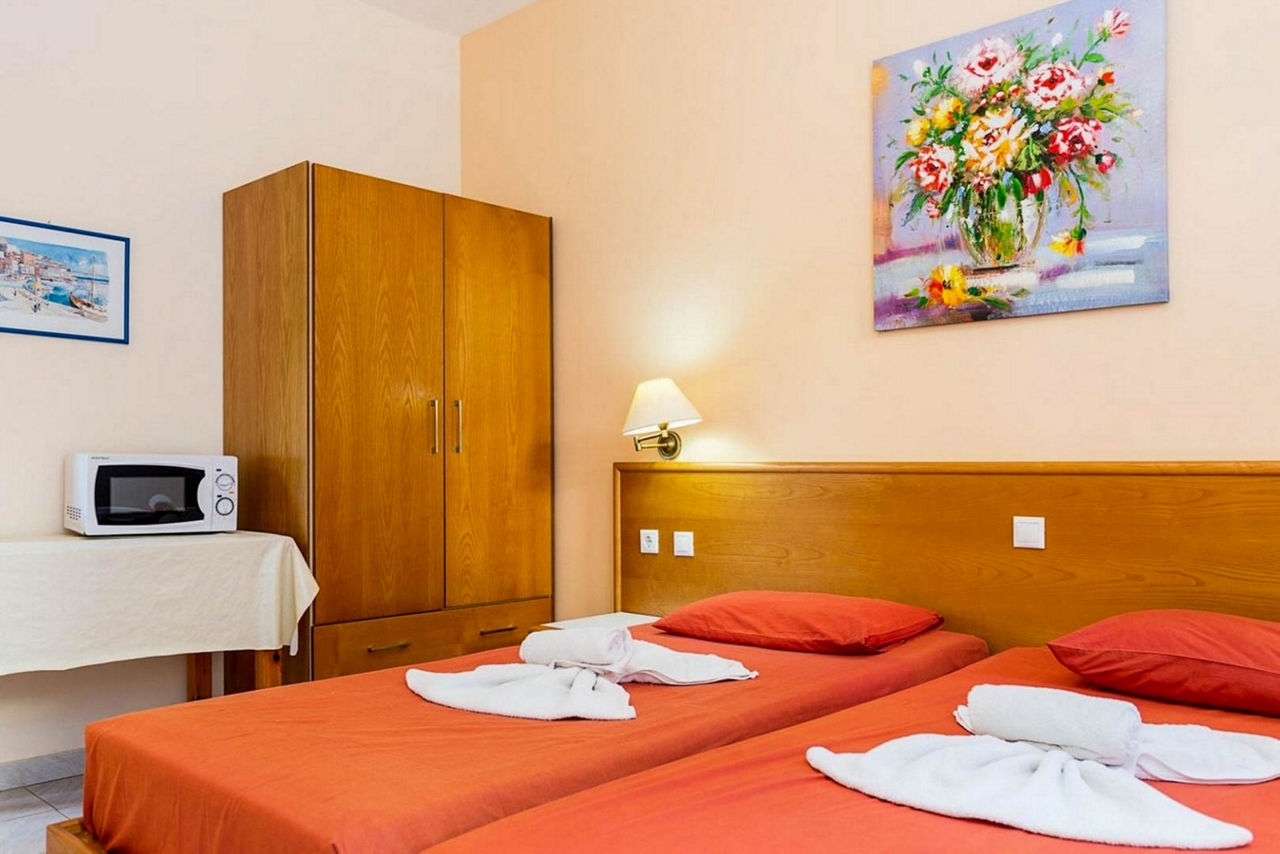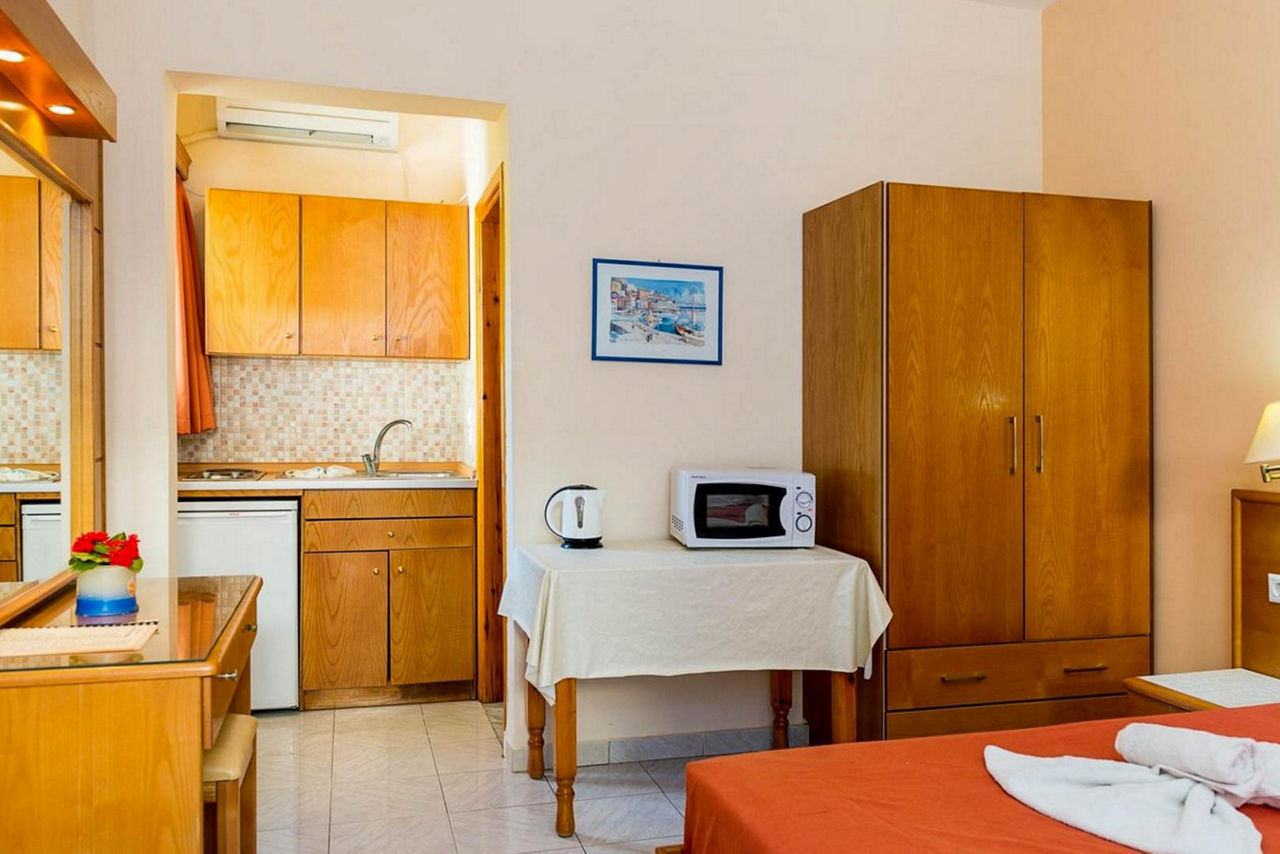 Just moments from the heart of Pefkos lies the Summer Memories Aparthotel. This charming property has everything that you could want for a perfect break in Rhodes. Outside there is a lovely pool area with children?s section and plenty of space for soaking up the Grecian sunshine. Inside, all rooms come with a full kitchenette and a balcony or terrace, perfect for relaxing. The property is located just a short distance from the beach and the vibrant centre of Pefkos where you will find a multitude of bars and restaurants to sample the delights of Rhodes.Studios sleep up to 2 adults and have bathroom containing a bath or shower, air conditioning*, hairdryer, double cooking rings, fridge, kettle, microwave, and a balcony or terrace.