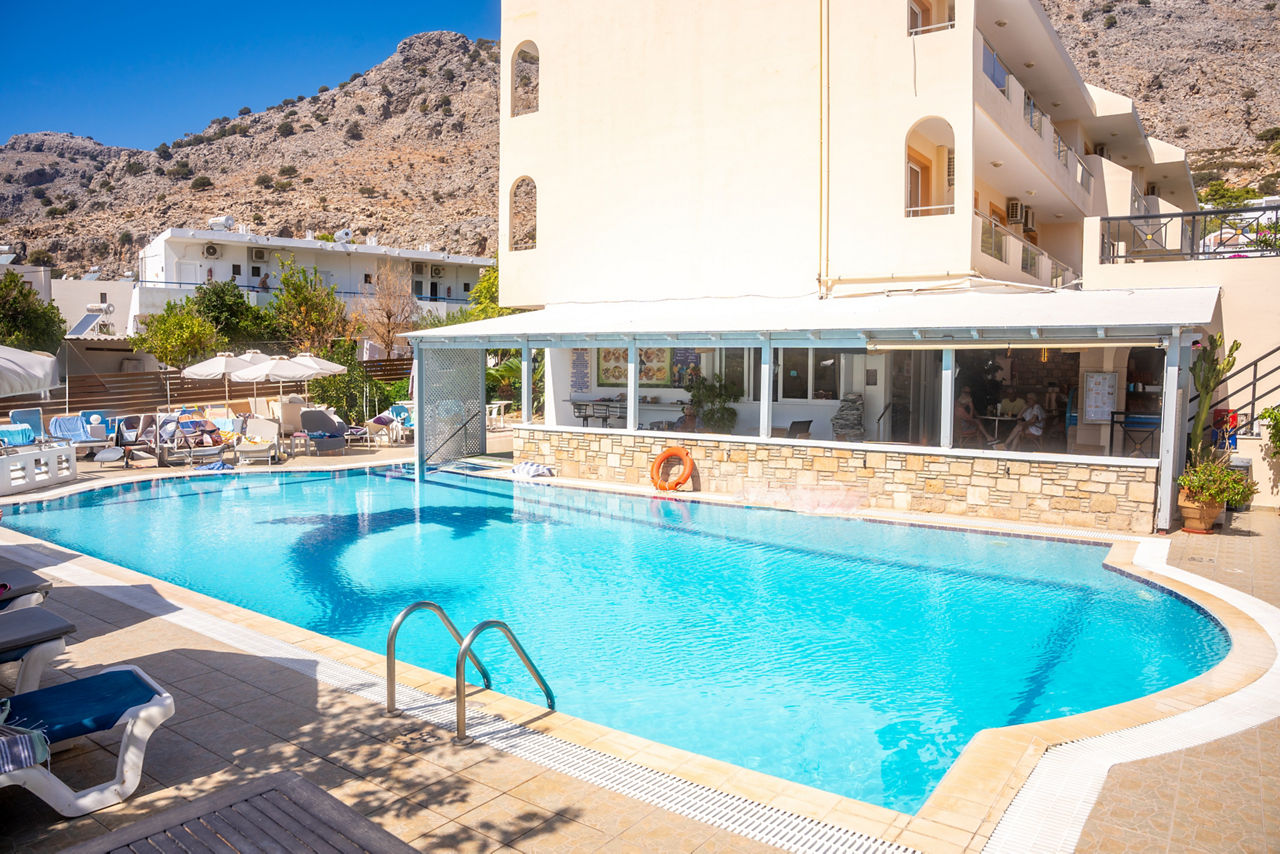 100m from Pefkos resort centre. 300m from the beach. 5km from the Lindos Acropolis.Summer Memories Aparthotel