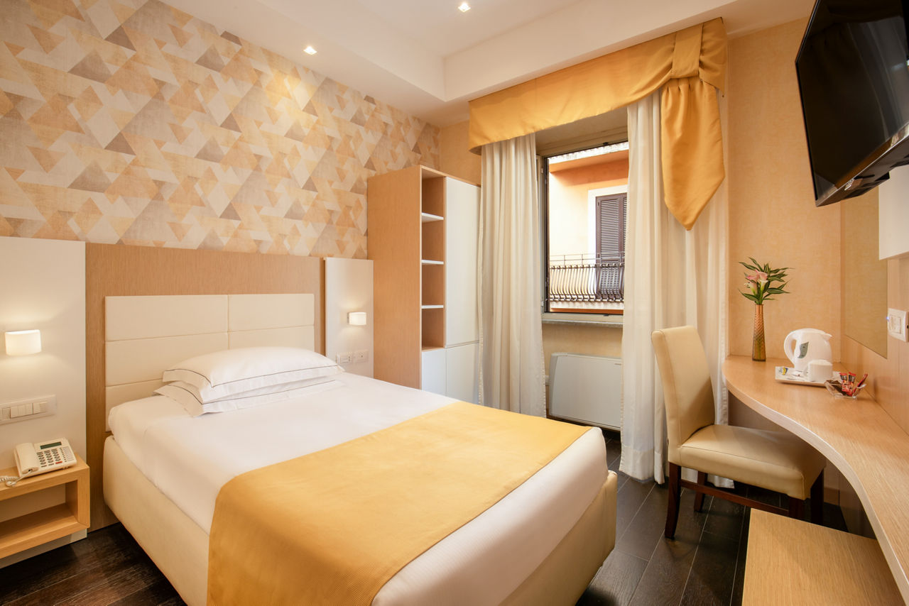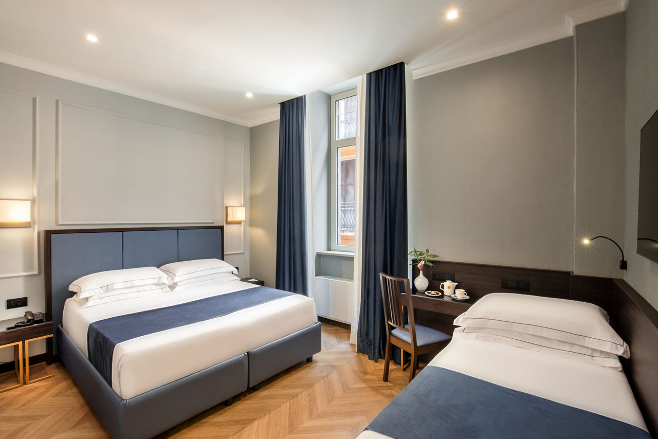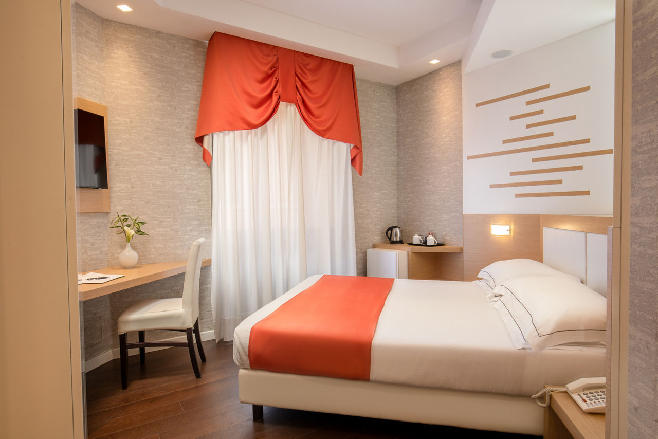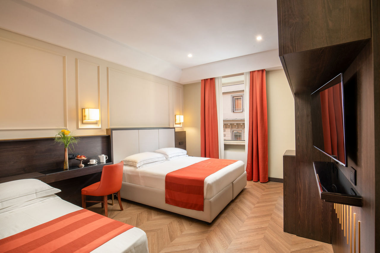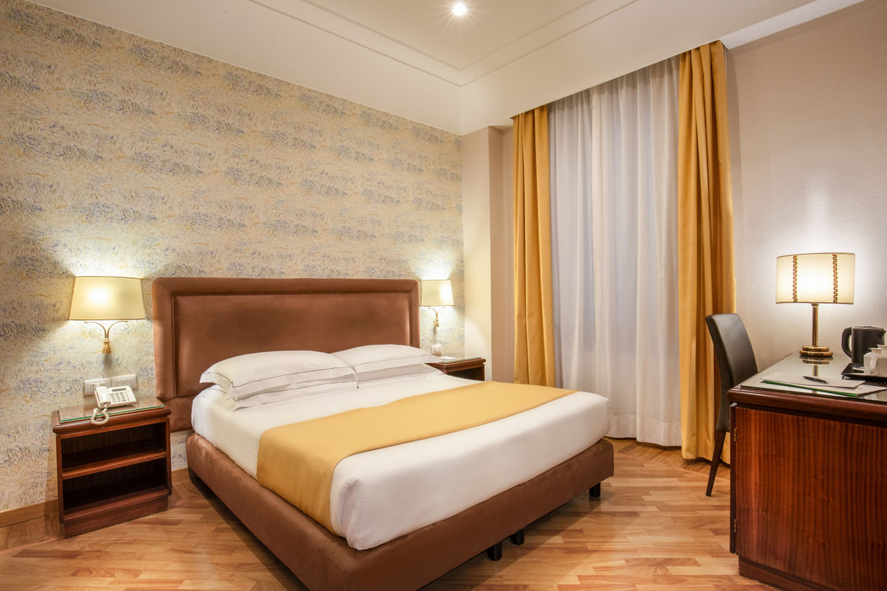 In the heart of the city, the family-run Hotel Diana Roof Garden offers a prime location close to the historical centre and the famous shopping streets of Rome. Explore the wonderful city on foot and discover top attractions like the Spanish Steps and the Trevi Fountain. Termini Station is also close by to the hotel so reaching the delights of the Vatican City and St Peter?s Basilica can be done with ease. This charming hotel, founded by a traditional Roman family in 1939 provides excellent hospitality and makes for a memorable stay in the Eternal City.Double or Twin rooms sleep up to 2 adults and 1 child and have bathroom containing a bath or shower, air conditioning (20 May-20 Oct) hairdryer, bathrobe and slippers, flat screen television and safety deposit box. Triple rooms, Family rooms and Single rooms are also available.