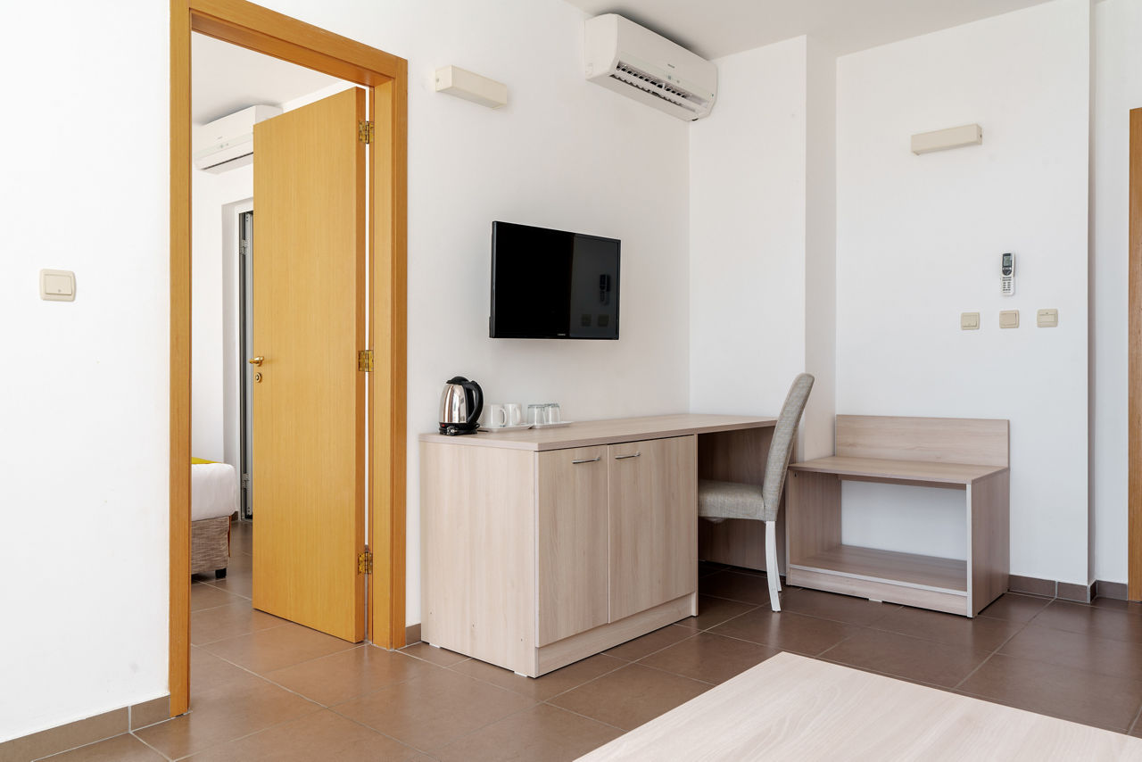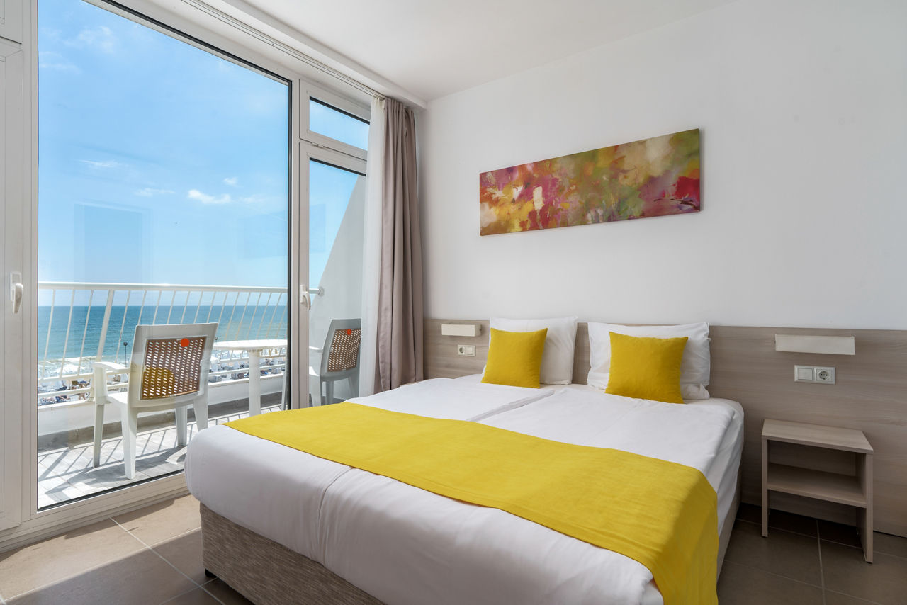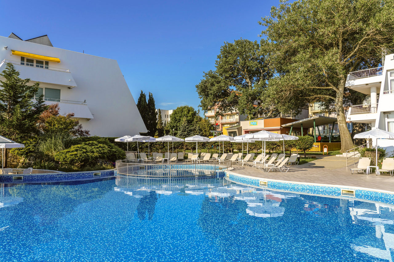 AluaSun Helios Beach is situated in the peaceful and charming location of Obzor. With sun loungers dotted around the swimming pool and the stretch of golden sand being on your doorstep, it is the ideal place to soak up the sun. The view of the ocean will never get old. There is daytime and evening entertainment available which includes live music shows. Perfect for the little ones, the children?s club has an activity programme which is the ideal place for them to have fun and create magical moments every day.Double Park View rooms sleep up to 2 adults and have bathroom with a shower, hairdryer, air conditioning, flat-screen television, mini-fridge and safety deposit box*. Room upgrade options are also available.
