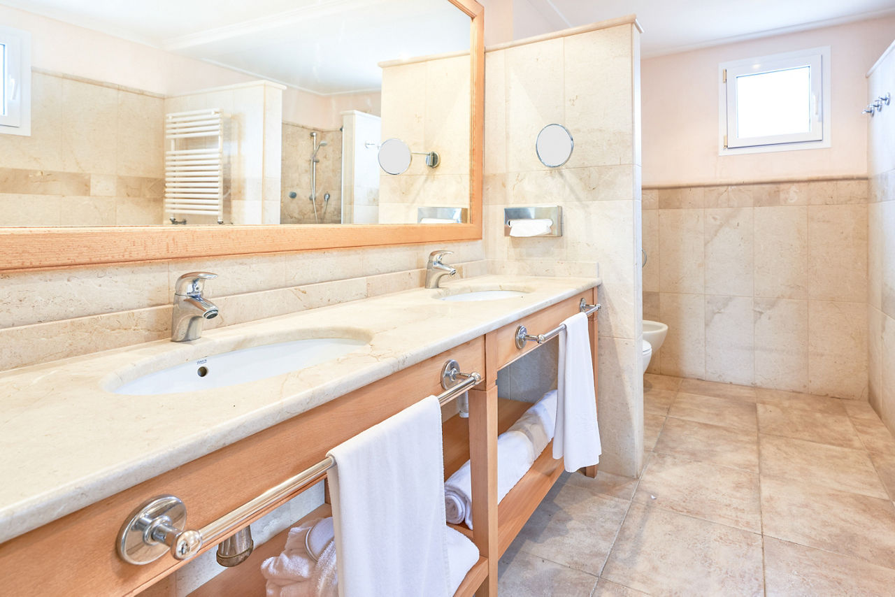 The luxurious Insotel Punta Prima Prestige SuitesPrestige suites sleep up to 2 adults and 2 children and have 2 bathrooms containing a whirlpool bath and shower and shower, air conditioning, hairdryer, bathrobe and slippers, flat screen television, sunbeds, double cooking rings, fridge, microwave and balcony or terrace. Room upgrade options are also available.