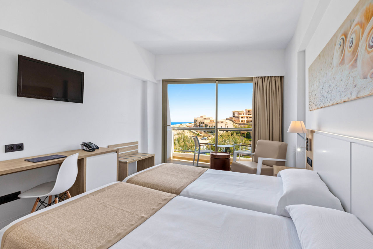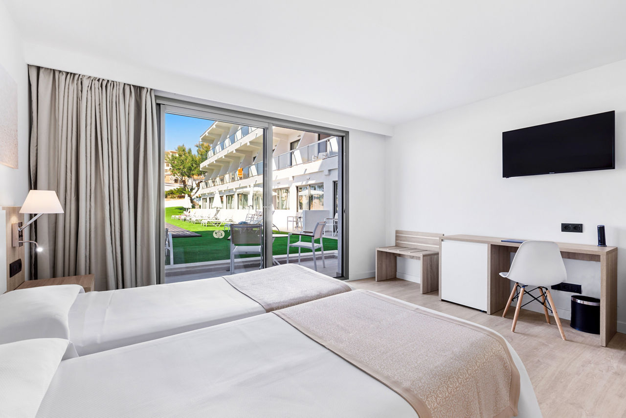 Modern interiors and spectacular sea views will capture your heart in THB Cala Lliteras. The light and spacious rooms are perfect to relax in; upgrade to a sea view room so you can watch the sunrise from your balcony. If you follow the path along the sea front you'll reach the beautiful Cala Agulla beach, which is surrounded by nature. There's plenty to keep you occupied with the large outdoor pool and garden, well equipped gym and plenty of shops and restaurants nearby.Book today for only £60 deposit per person!