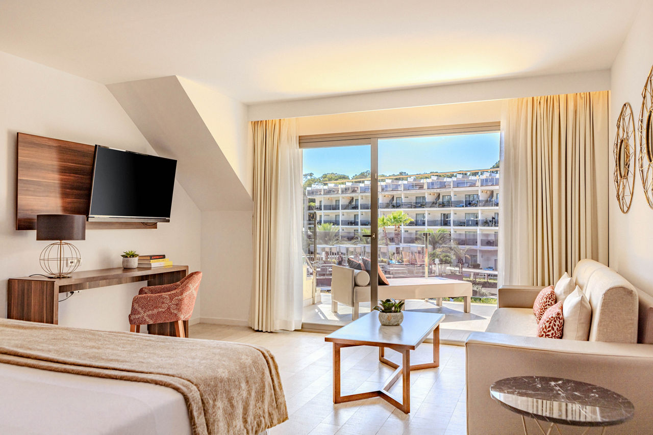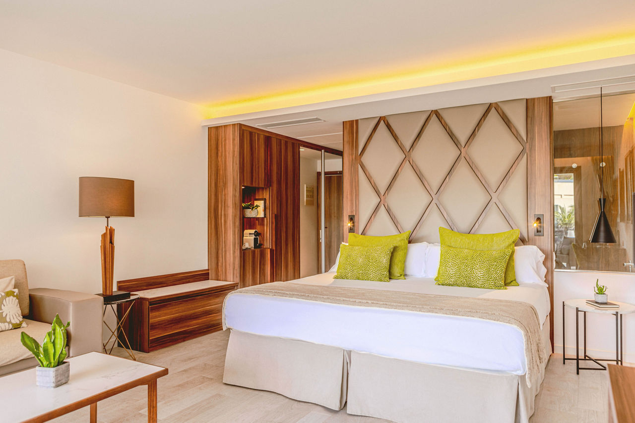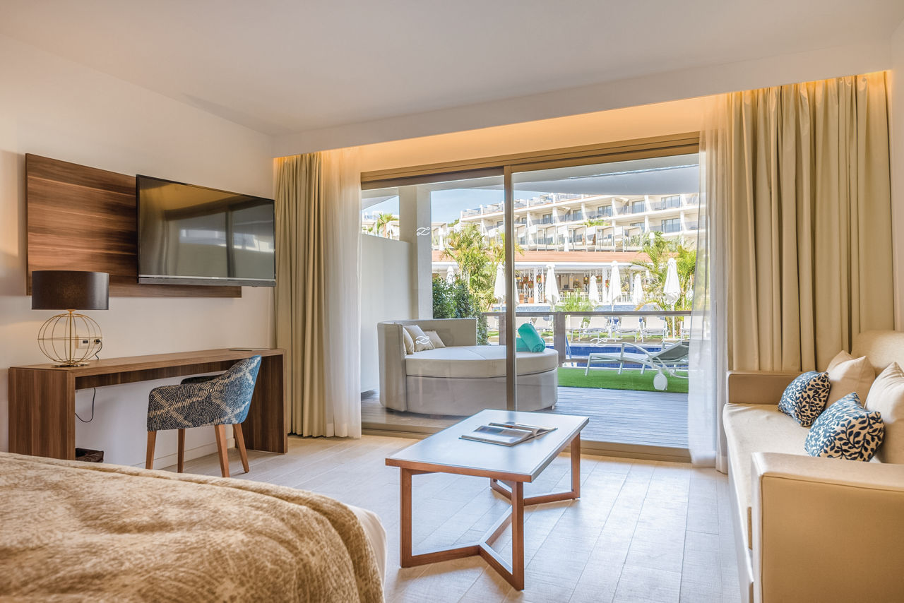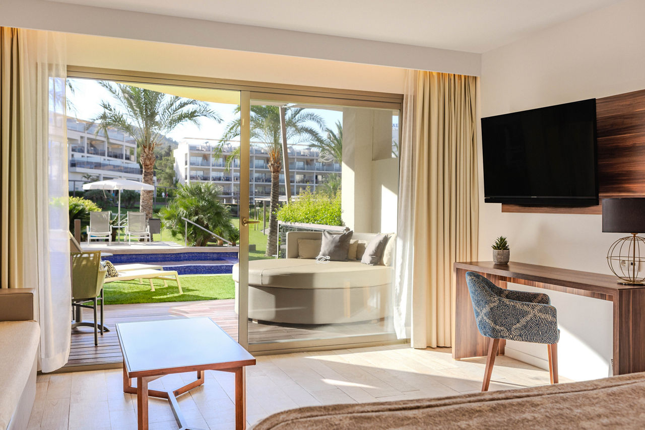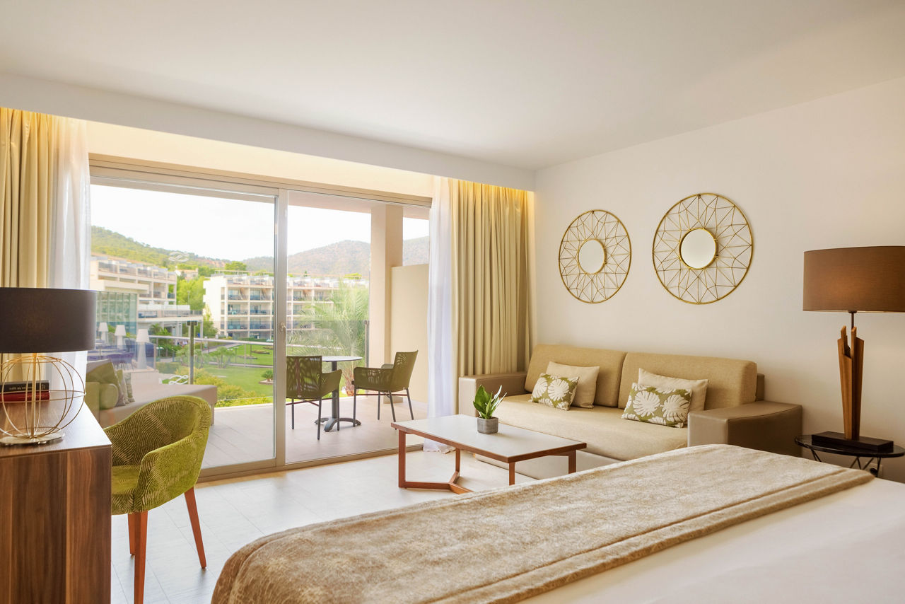 The 5* Zafiro Palace Palmanova is located in the south-western part of the island, just a short drive away from a selection of golf courses. The hotel boasts a smart luxury concept to please the style-conscious. The modern and contemporary accommodation offers a range of spacious rooms types that won?t disappoint. For those seeking total relaxation, there?s a large pool area with Bali beds, as well as an on-site spa to indulge in. A wide selection of Mediterranean dining options are available, plus, with such a central location, there are many shops, bars and restaurants in Palma Nova to explore just a short stroll away. The hotel itself remains true to the concept of smart luxury in the surroundings of a magnificent pool complex, you can find everything that can be expected of a top-quality holiday experience.Junior Suites sleep up to 3 adults and 1 child and have bathroom containing bath and separate shower, air conditioning, hairdryer, bathrobe and slippers, flat screen television, coffee making facilities, Wi-Fi, safety deposit box and balcony or terrace. Junior suites with Pool View, Swim Up Junior suites with Pool View, Penthouse Junior suites with Pool View, Penthouse suites with Pool View and Sole Use suites are also available.