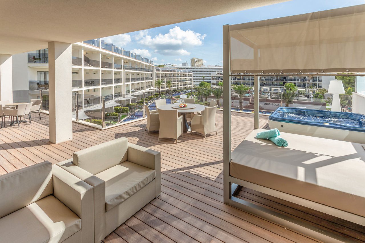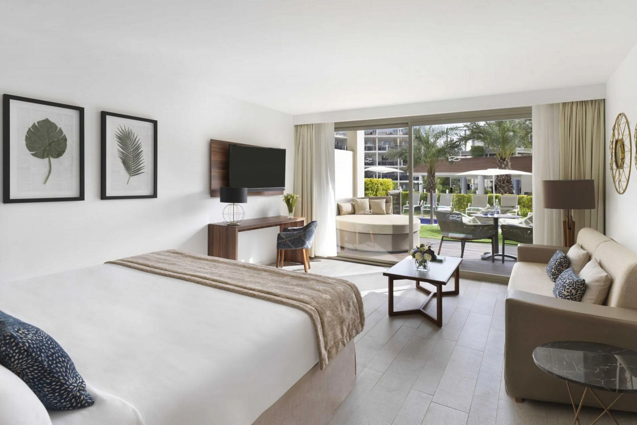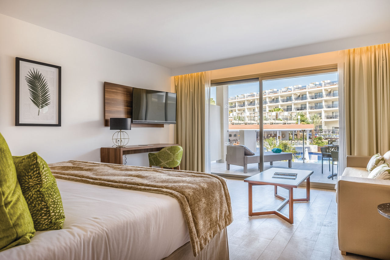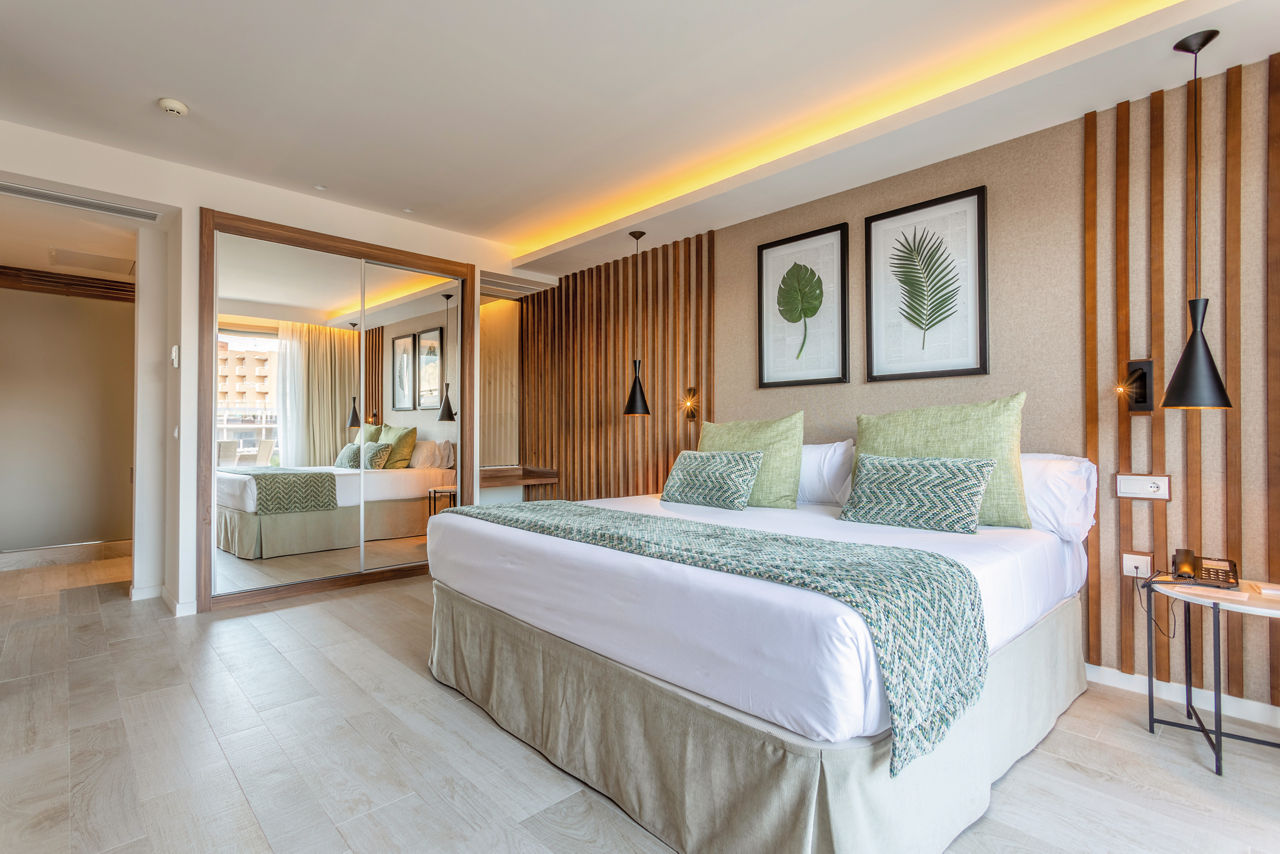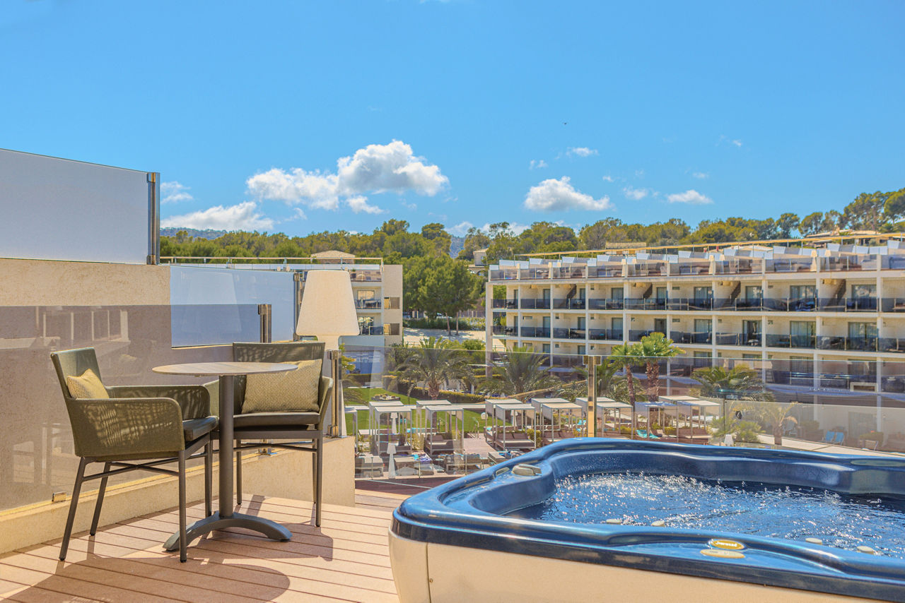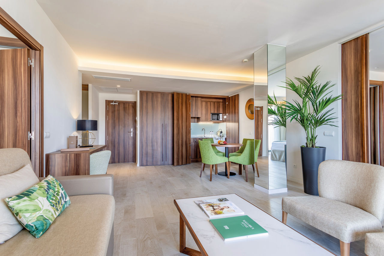 The 5* Zafiro Palace Palmanova is located in the south-western part of the island, just a short drive away from a selection of golf courses. The hotel boasts a smart luxury concept to please the style-conscious. The modern and contemporary accommodation offers a range of spacious rooms types that won?t disappoint. For those seeking total relaxation, there?s a large pool area with Bali beds, as well as an on-site spa to indulge in. A wide selection of Mediterranean dining options are available, plus, with such a central location, there are many shops, bars and restaurants in Palma Nova to explore just a short stroll away. The hotel itself remains true to the concept of smart luxury in the surroundings of a magnificent pool complex, you can find everything that can be expected of a top-quality holiday experience.Junior Suites sleep up to 3 adults and 1 child and have bathroom containing bath and separate shower, air conditioning, hairdryer, bathrobe and slippers, flat screen television, coffee making facilities, Wi-Fi, safety deposit box and balcony or terrace. Junior suites with Pool View, Swim Up Junior suites with Pool View, Penthouse Junior suites with Pool View, Penthouse suites with Pool View and Sole Use suites are also available.