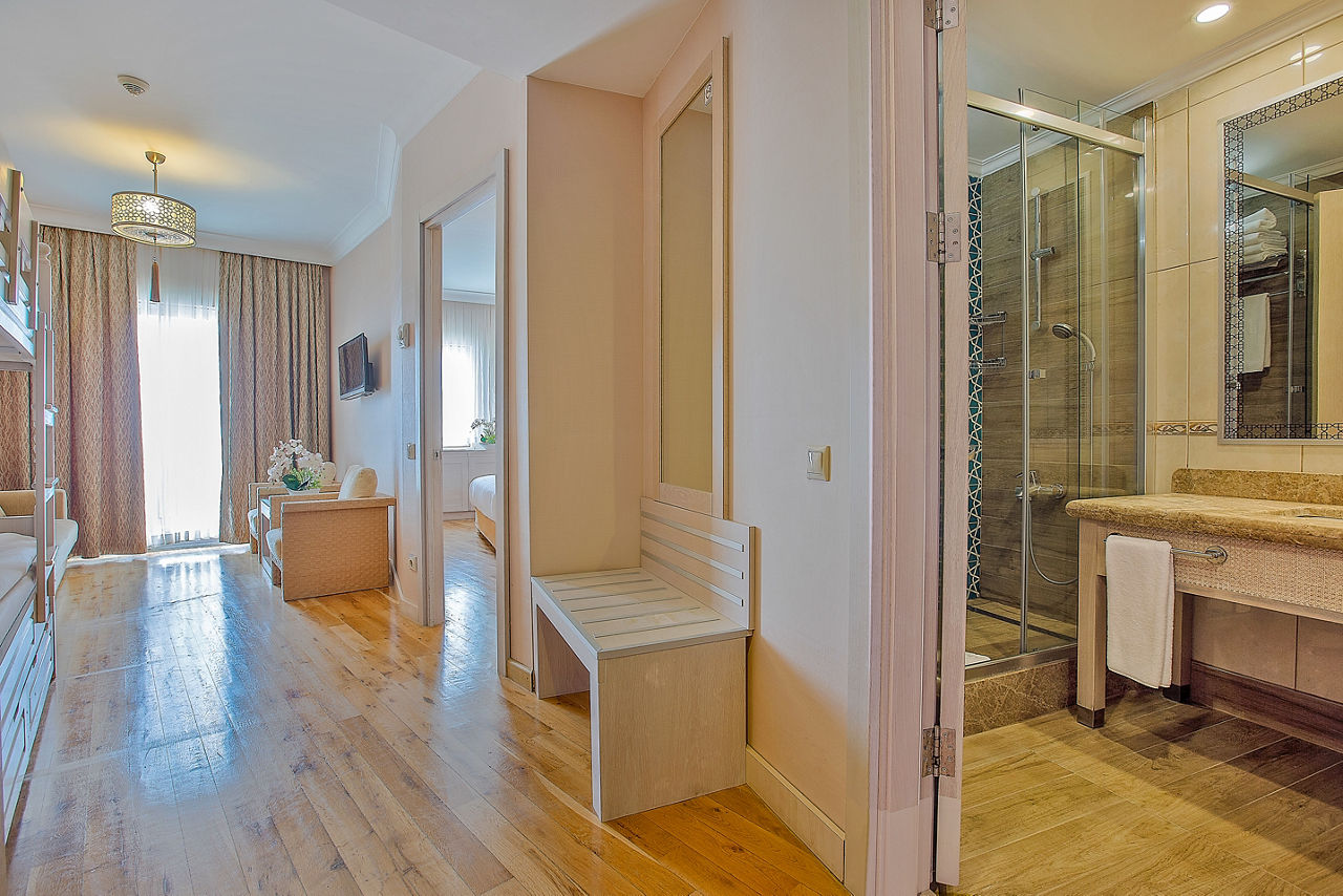 Looking for the ultimate Turkish getaway? Mukarnas Resort & Spa has it all. With a four-star rating and an unbeatable beachfront location, this resort combines relaxation and adventure for one incredible experience. Indulge in soothing spa treatments, enjoy family-friendly activities, and unwind by the outdoor pool or aquapark, there's something for everyone.Double and Twin rooms sleep up to 3 adults and have bathroom containing a bath or shower, air conditioning (20 May-10 Oct), hairdryer, flat screen television, fridge, 24hr room service* and balcony. Room upgrade options are also available.