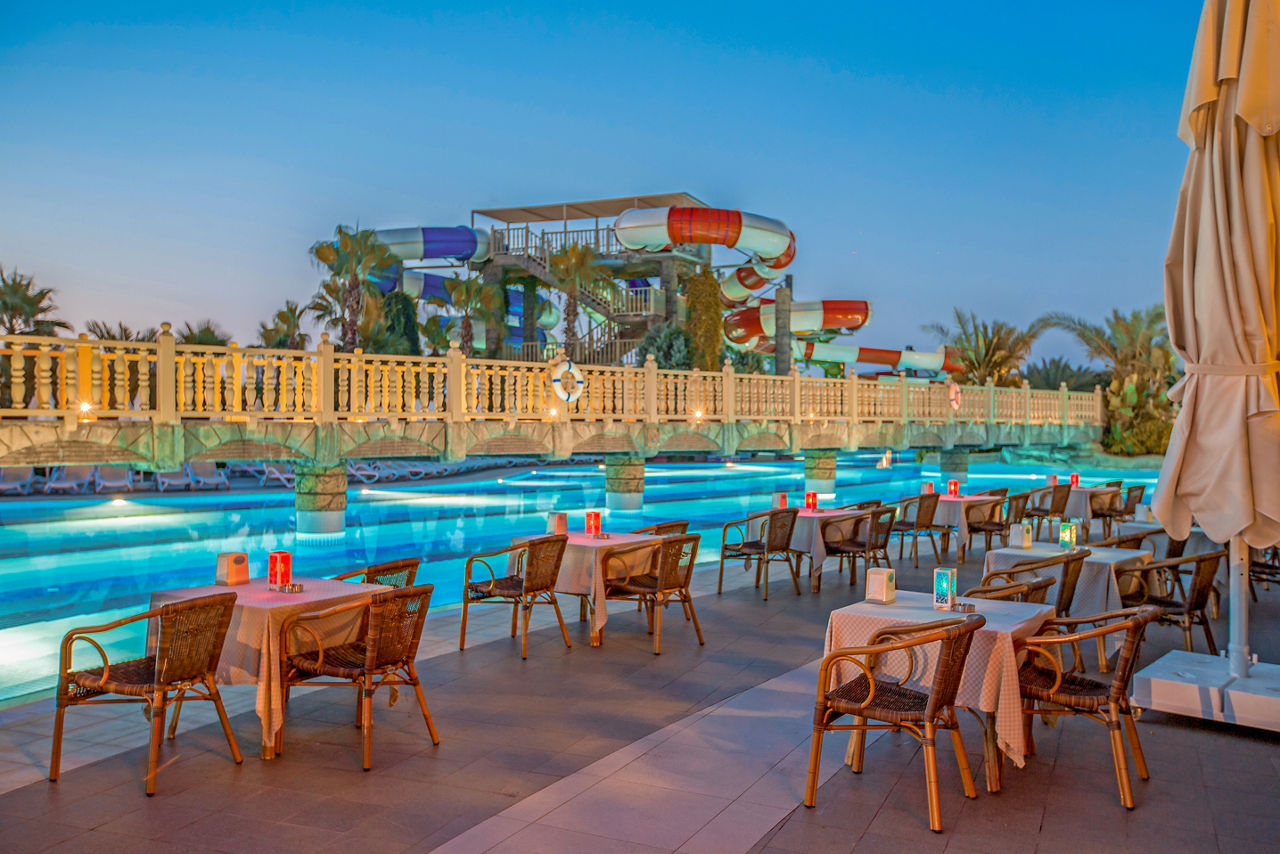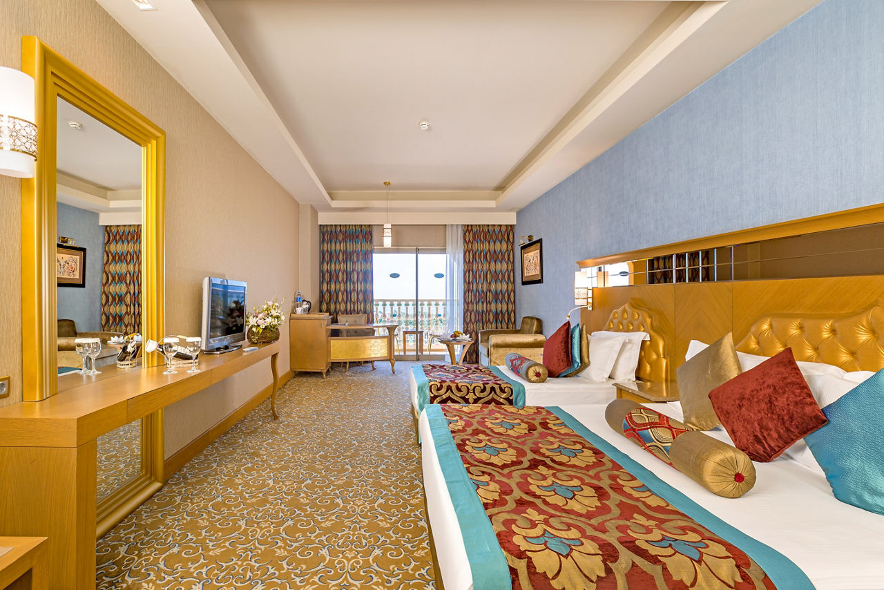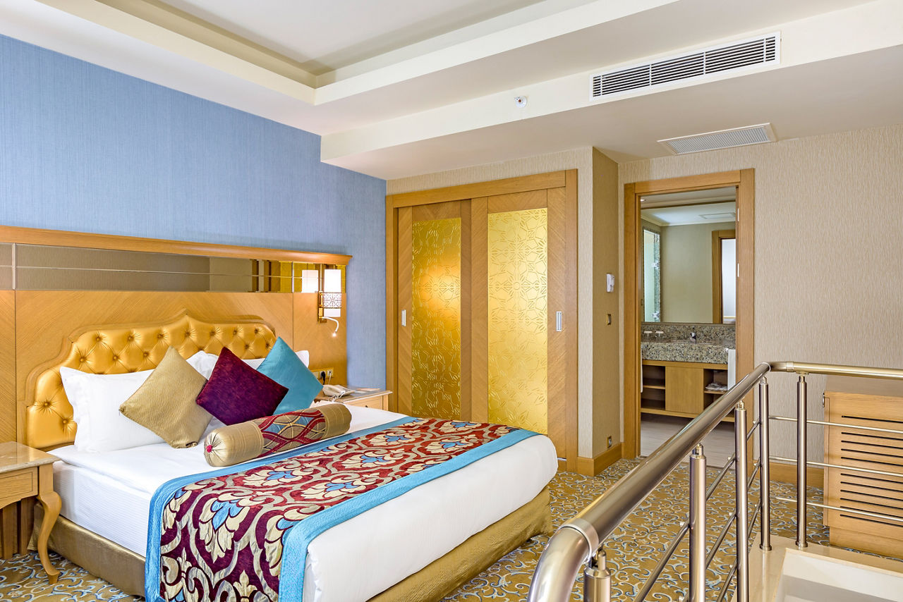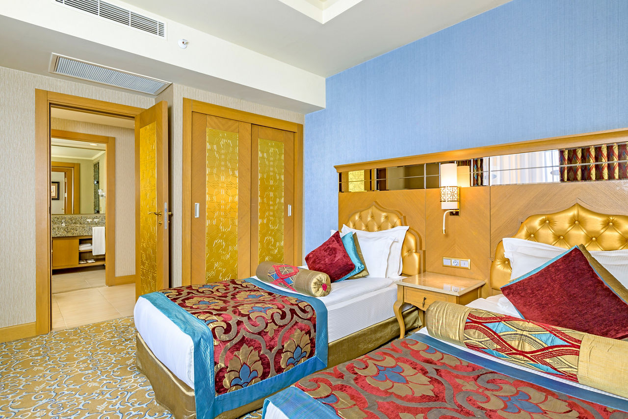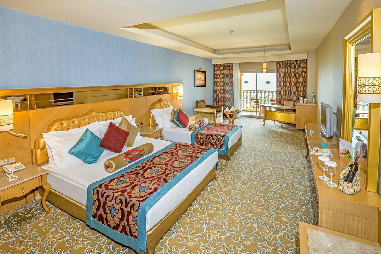 Royal Holiday Palace is a vibrant resort perfect for a fun-filled family holiday. The whole family will love the amazing activities, thrilling aqua park, exciting evening shows, and soothing spa. Guests can relax in the spacious rooms, beautiful gardens, and enjoy direct access to a sandy beach. There's a fantastic All Inclusive package on offer, with diverse dining options and a choice of bars. Combining comfort, a wide range of amenities, and engaging entertainment, Royal Holiday Palace ensures a memorable and enjoyable stay for families looking for a Turkish escape!Board Basis & Room Upgrades
