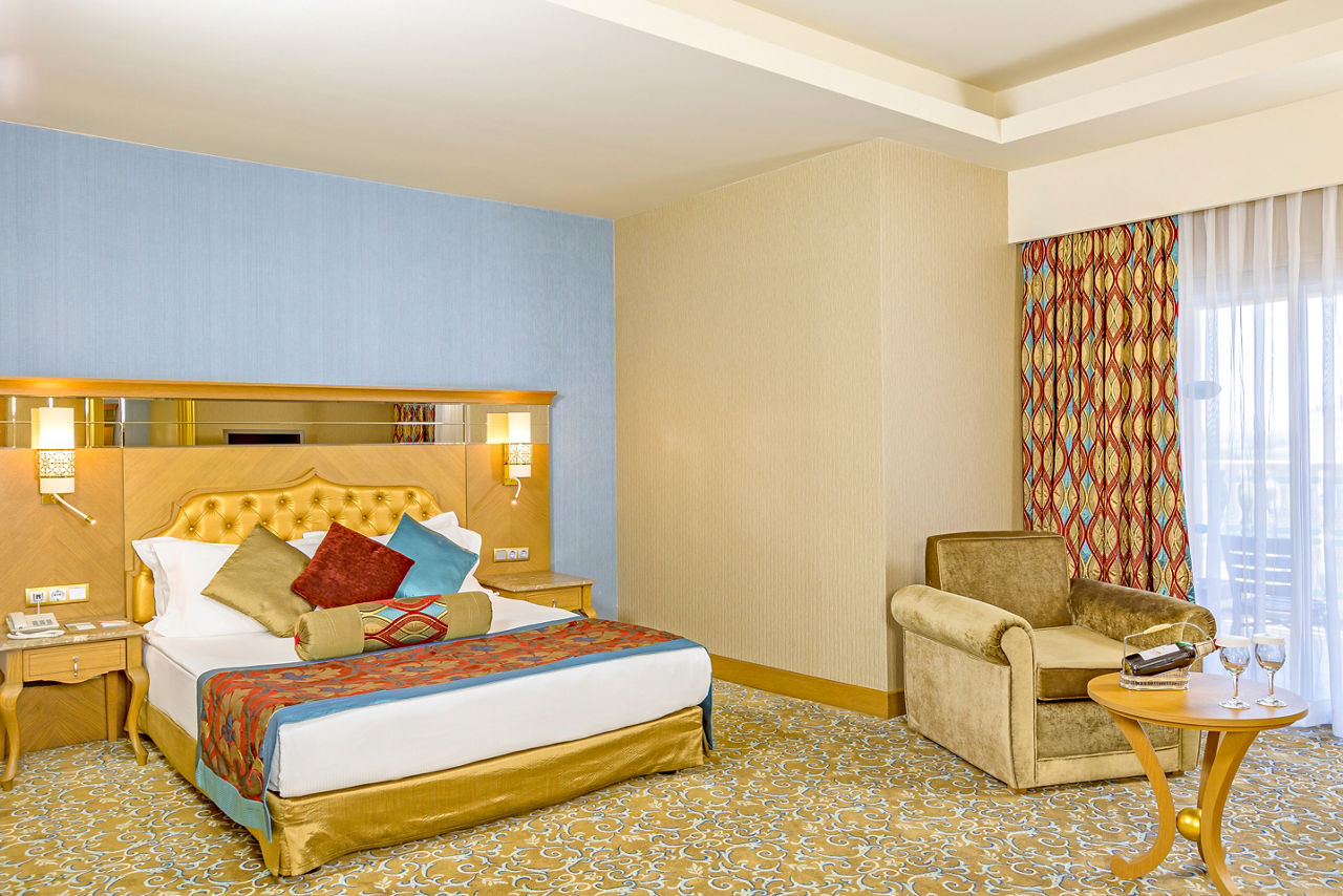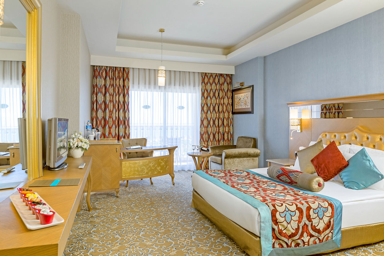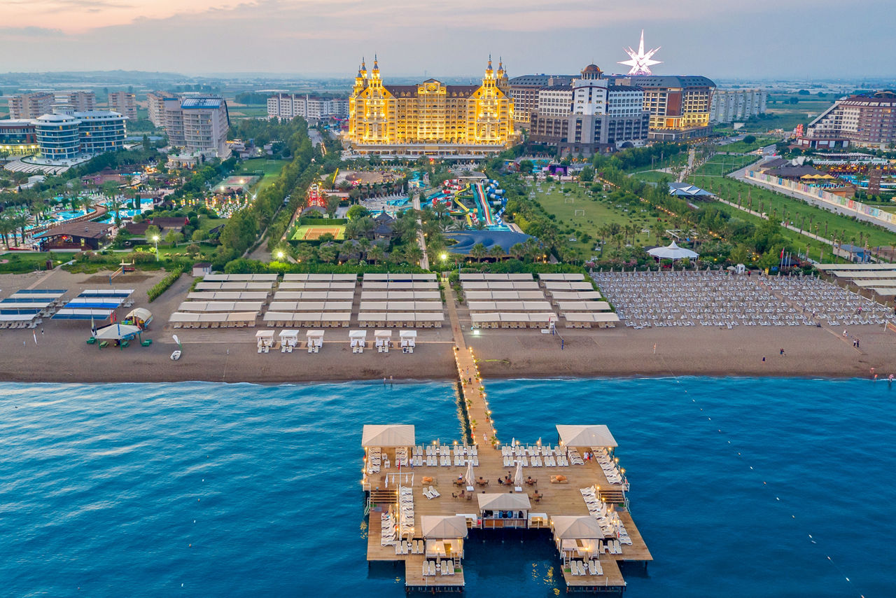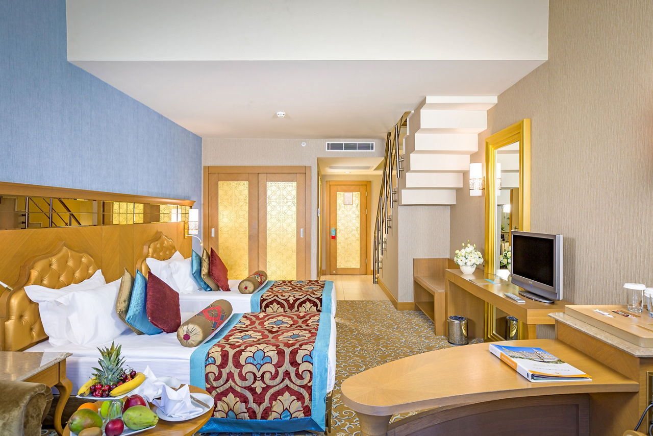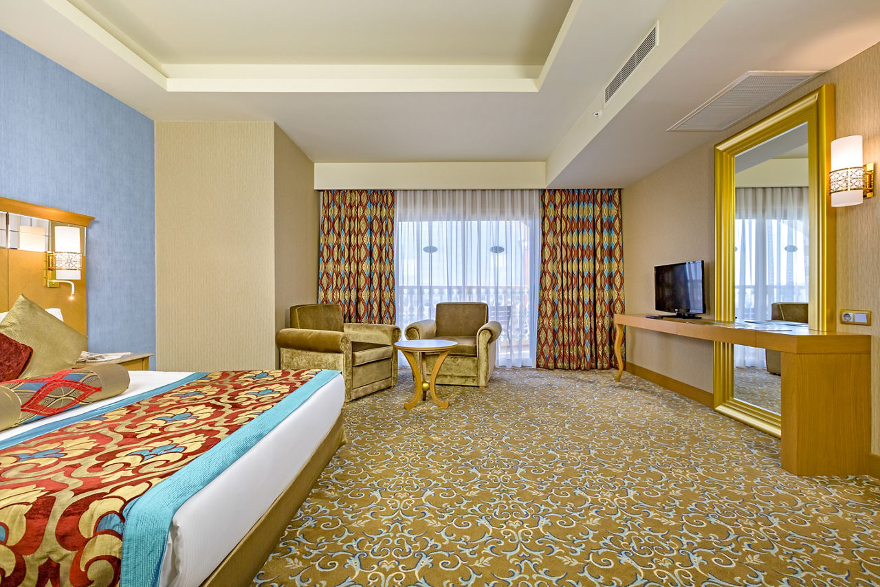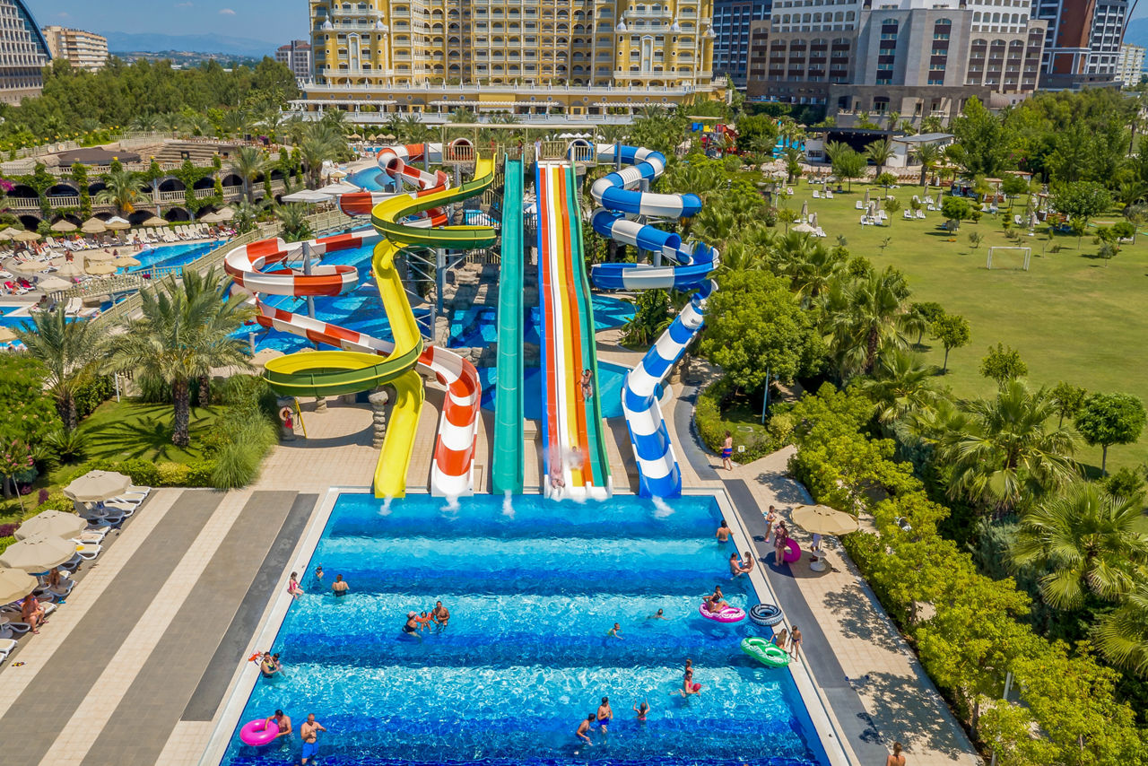 Royal Holiday Palace is a vibrant resort perfect for a fun-filled family holiday. The whole family will love the amazing activities, thrilling aqua park, exciting evening shows, and soothing spa. Guests can relax in the spacious rooms, beautiful gardens, and enjoy direct access to a sandy beach. There's a fantastic All Inclusive package on offer, with diverse dining options and a choice of bars. Combining comfort, a wide range of amenities, and engaging entertainment, Royal Holiday Palace ensures a memorable and enjoyable stay for families looking for a Turkish escape!Board Basis & Room Upgrades