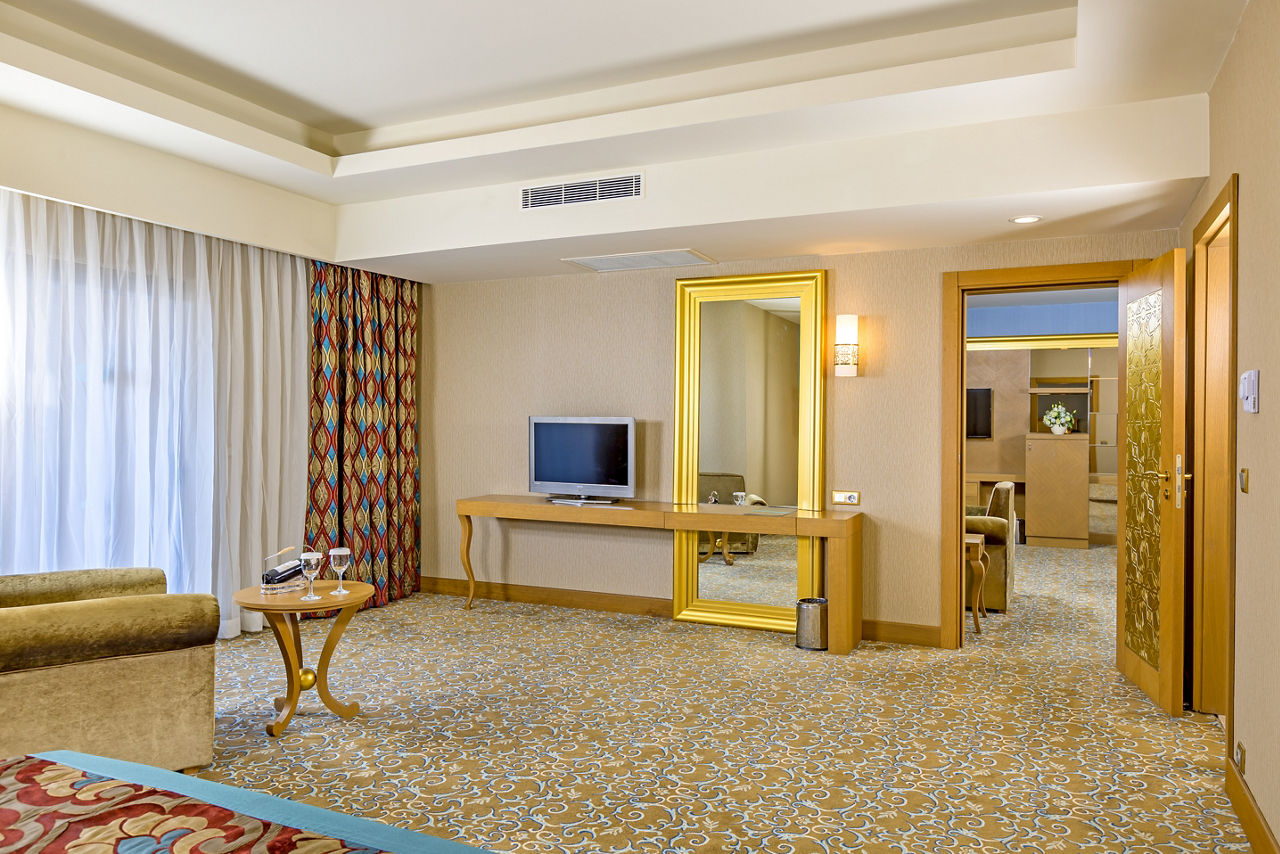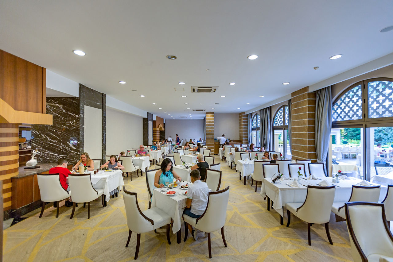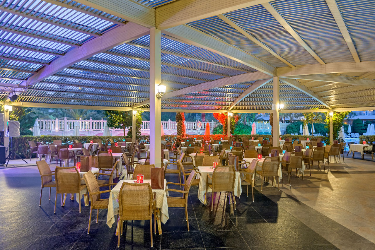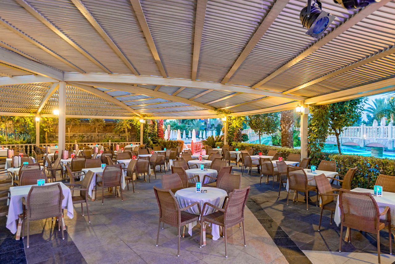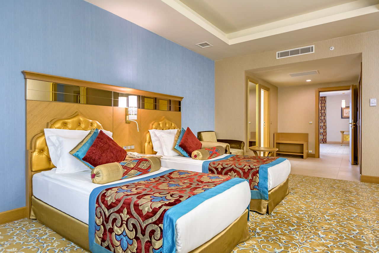 Royal Holiday Palace is a vibrant resort perfect for a fun-filled family holiday. The whole family will love the amazing activities, thrilling aqua park, exciting evening shows, and soothing spa. Guests can relax in the spacious rooms, beautiful gardens, and enjoy direct access to a sandy beach. There's a fantastic All Inclusive package on offer, with diverse dining options and a choice of bars. Combining comfort, a wide range of amenities, and engaging entertainment, Royal Holiday Palace ensures a memorable and enjoyable stay for families looking for a Turkish escape!Board Basis & Room Upgrades